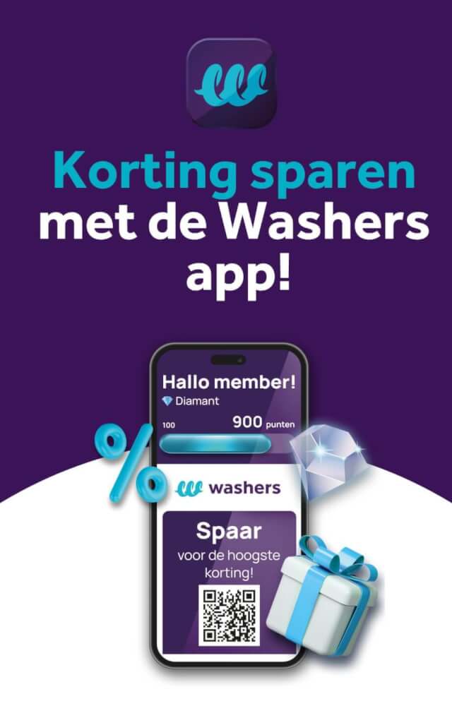 Wil je nog voordeliger wassen? Kies dan voor onze gratis Washers app en krijg standaard korting op ons beste wasprogramma Premium.
